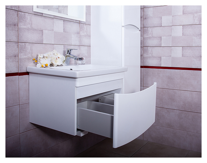 Тумба БРИКЛАЕР Вега 60 выполнена в современном стиле и станет украшением любой ванной комнаты. Благодаря подвесной конструкции изделие не занимает много места, позволяет экономить пространство и облегчает уборку. Модель оснащена выдвижным ящиком для хранения ванных принадлежностей. Фасад мебели выполнен из МДФ, которая не восприимчива к влаге, на длительный срок сохраняет форму и цвет изделия в первозданном виде. Может использоваться в комплекте с раковиной Комо 60. Особенности: