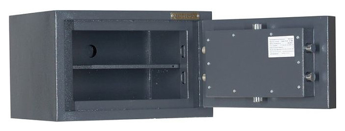 Сейф взломостойкий огнестойкий Меткон СМ2-30 предназначен для хранения бумажных документов, ценных вещей в гостиницах, отелях, офисах, квартирах и загородных домах. Модель оснащена ригелями с защитой от высверливания и выбивания, одной съемной полкой и ключевым замком BORDER класса А. В комплект поставки входит анкерный болт. Особенности: