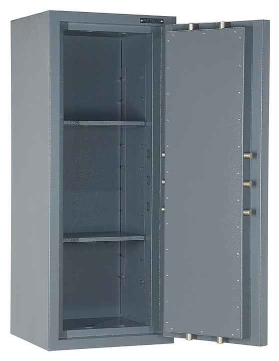 Сейф взломостойкий Меткон СМ(3)-120 предназначен для хранения бумажных документов и ценных вещей в гостиницах, отелях, офисах, квартирах и загородных домах. Модель оснащена двумя съемными полками, ригелями с защитой от высверливания и выбивания, в двери установлен немецкий ключевой замок Mauer класс В с поворотной ручкой. В комплект поставки входит анкерный болт. Особенности: