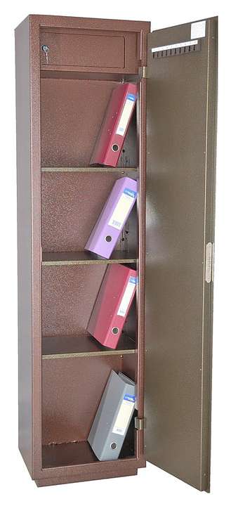 Сейф бухгалтерский Меткон МБ-40 предназначен для хранения для хранения бумажных документов, ценных вещей в гостиницах, отелях, офисах, квартирах и загородных домах. Модель оснащена 3 полками и трейзером и ключевым сувальдным замком BORDER или аналогичным замком другого производителя. Дополнительные характеристики: