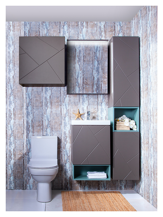 Тумба под раковину БРИКЛАЕР Кристалл 50 см с нишей, подвесная, ясень анкор темный, софт графит, муссон