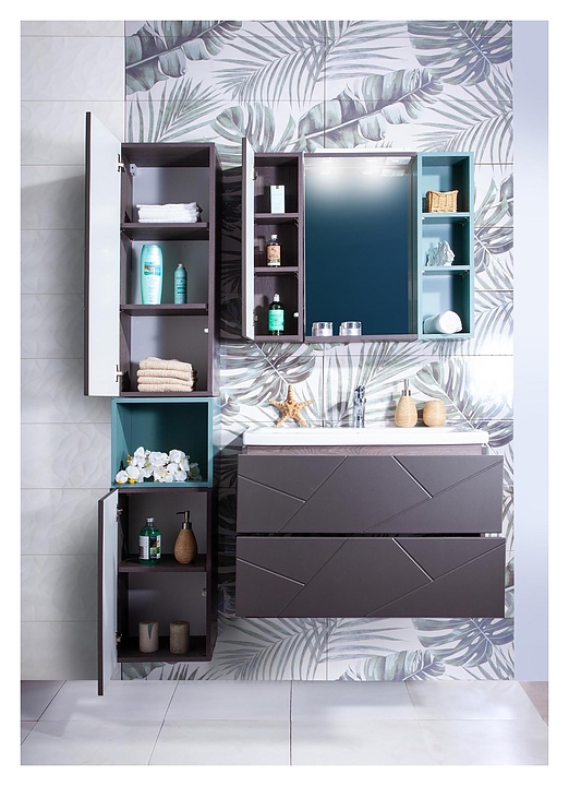 Тумба под раковину БРИКЛАЕР Кристалл 80 см без ниши, подвесная, ясень анкор темный, софт графит