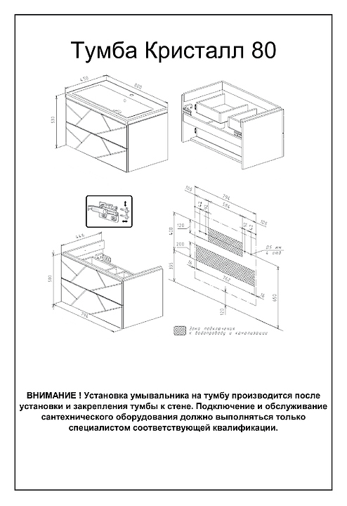 Тумба БРИКЛАЕР Кристалл 80 выполнена в современном стиле. Благодаря подвесной конструкции изделие не занимает много места, позволяет экономить пространство и облегчает уборку. Модель оснащена 2 выдвижными ящиками с нажимным механизмом открывания. Корпус выполнен из ЛДСП, фасад - из МДФ с пленкой ПВХ. Может использоваться в комплекте с раковиной Комо 80. Особенности: