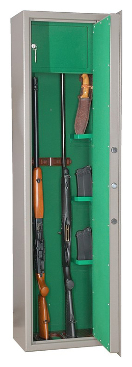 Сейф оружейный Меткон СО-4 предназначен для хранения оружия, патронов и принадлежностей. Модель оснащена отверстиями для крепления на задней стенке и днище корпуса, 2 ключевыми 8-ми сувальдными замками с ригельной системой запирания в 3 стороны и трейзером. Внутренняя поверхность сейфа выполнена из флока, ложементы - из дерева. Дополнительные характеристики: