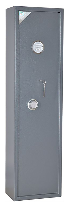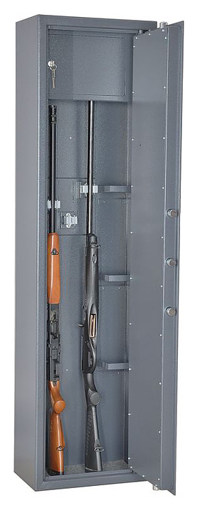 Сейф оружейный Меткон СО-4ЭК предназначен для хранения оружия, патронов и принадлежностей. Модель оснащена съемными полками, роликовыми ложементами, трейзером под патроны, отверстиями для крепления на задней стенке. В двери установлен электронный замок с ригельной системой запирания. Дополнительные характеристики: