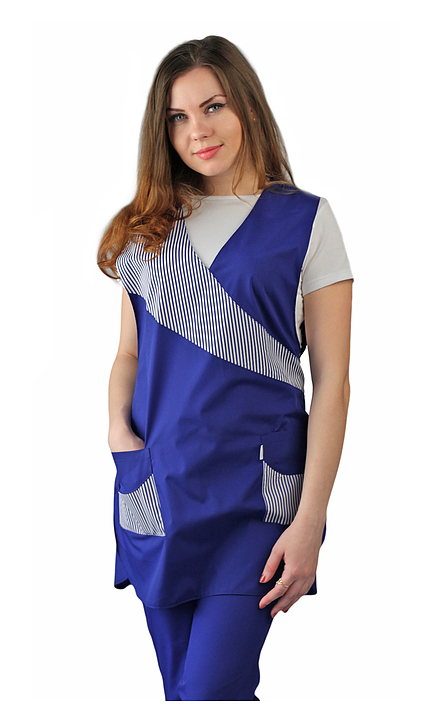 Женский костюм Ursus ТОР528-030 София используется продавцами на предприятиях торговли, работниками сферы услуг и техническим персоналом гостиниц, состоит из фартука-сарафана и брюк. Комплект сшит из сорочечной ткани, состоящей на 65% из полиэфира и на 35% из хлопка, с водоотталкивающей пропиткой. Минимальная сумма заказа 25000 рублей. Особенности: