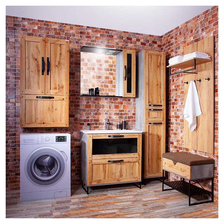Тумба под раковину БРИКЛАЕР Лофт 80 см напольная, дуб золотой, метрополитен грей