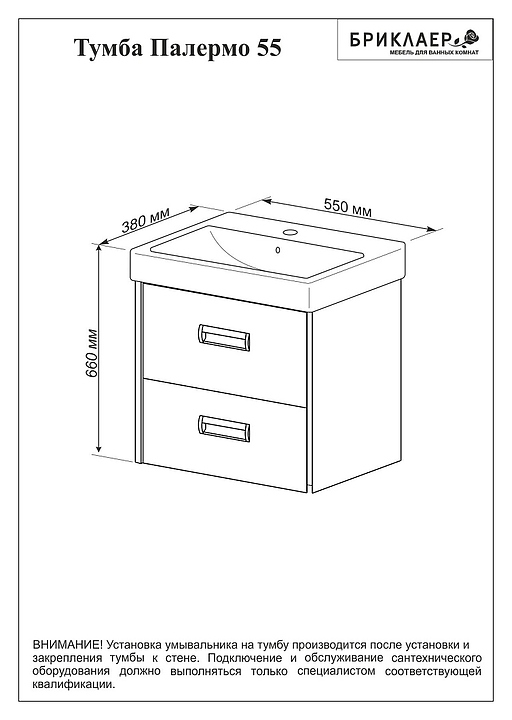 Тумба под раковину БРИКЛАЕР Палермо 55 см подвесная, белый глянец