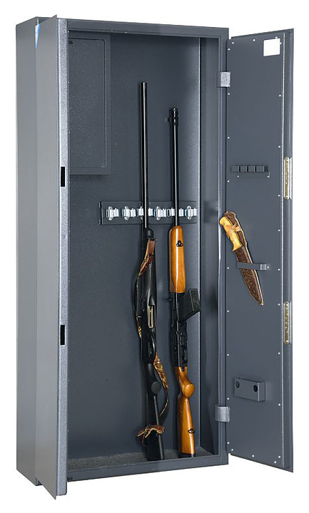 Сейф Меткон ОШ-63П предназначен для хранения оружия, патронов и принадлежностей. Модель оснащена полками, ковриком, отверстиями для крепления на задней стенке корпуса, 2 ключевыми замками и трейзером. Ложементы выполнены из металла с резиновыми роликами. Дополнительные характеристики: