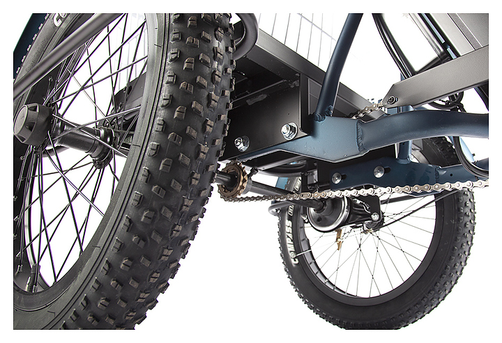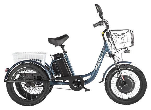 Трицикл Eltreco Porter Fat 500 используется для комфортного передвижения по загородной местности. Модель оснащена электромотором прямого привода на переднем колесе. Рама выполнена из алюминия, полноразмерные крылья - из стали. Особенности: