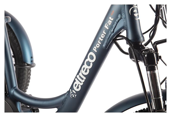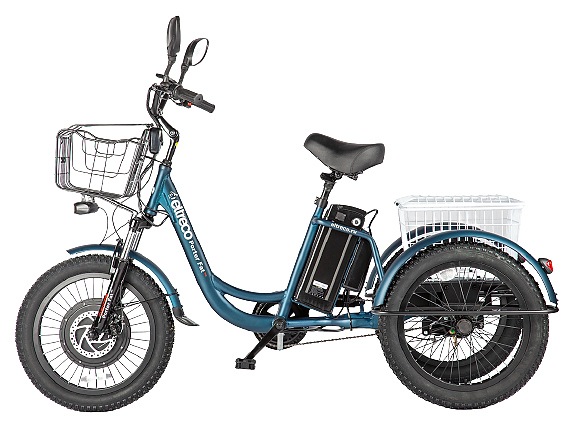 Трицикл Eltreco Porter Fat 500 UP! используется для комфортного передвижения по загородной местности. Модель оснащена электромотором прямого привода на переднем колесе. Рама выполнена из алюминия, полноразмерные крылья - из стали. Особенности: