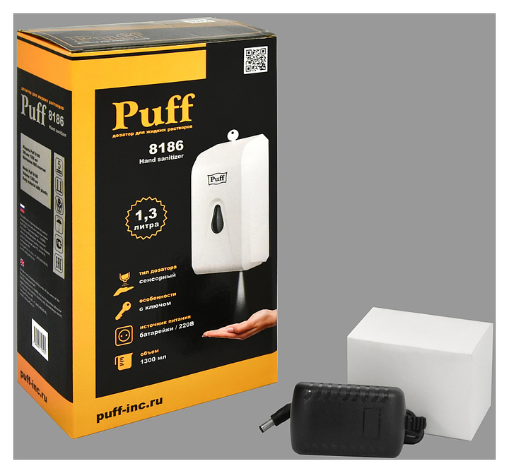 Автоматический дозатор Puff 8186 предназначен для размещения и дозированной подачи жидких антисептических растворов в санитарных узлах офисов, гостиниц, предприятий общественного питания, медицинских учреждений и других мест средней проходимости. Модель оснащена окошком индикации наличия жидкости. Корпус выполнен из белого ударопрочного АБС-пластика. В комплект поставки входит адаптер для работы от электросети и набор крепежа. Особенности:
