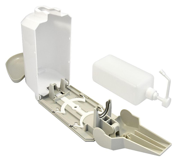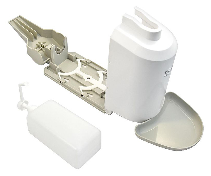 Локтевой дозатор Puff 8193 предназначен для размещения и дозированной подачи жидких и гелеобразных антисептических растворов и жидкого мыла в санитарных узлах офисов, гостиниц, предприятий общественного питания, медицинских учреждений и других мест средней проходимости. Модель оснащена каплесборником. Корпус выполнен из ударопрочного АБС-пластика. В комплект поставки входит набор крепежа. Особенности: