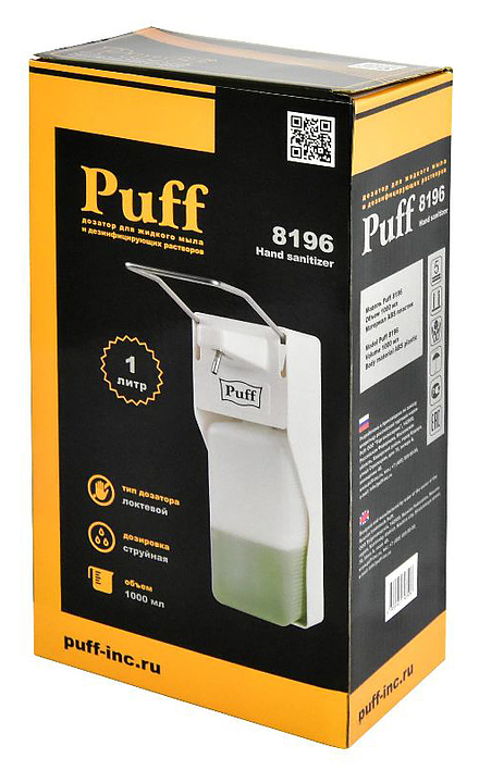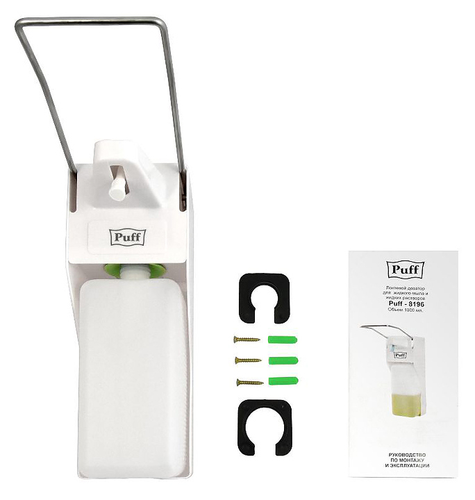 Локтевой дозатор Puff 8196 предназначен для размещения и дозированной подачи жидких и гелеобразных антисептических растворов и жидкого мыла в санитарных узлах офисов, гостиниц, предприятий общественного питания, медицинских учреждений и других мест средней проходимости. Модель оснащена удобной ручкой. Корпус выполнен из белого ударопрочного АБС-пластика, ручка - из металла. В комплект поставки входит набор крепежа. Особенности:
