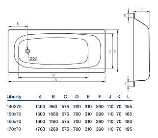 Ванна KollerPool Liberty B70C2200E 170х70 см, сталь