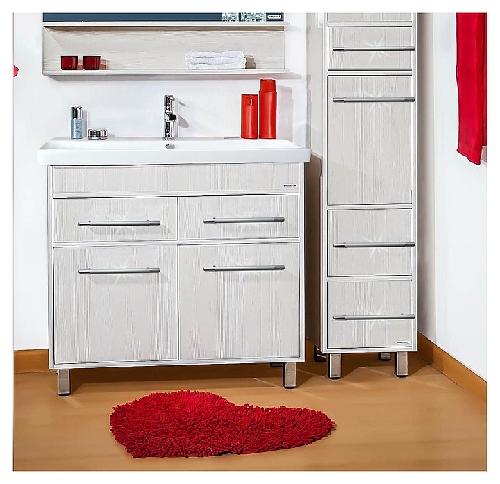 Тумба БРИКЛАЕР Чили 90 выполнена в современном минималистичном стиле. Благодаря компактным размерам и функциональности мебель станет украшением любой ванной комнаты. Модель оснащена 4 выдвижными ящиками для хранения ванных принадлежностей. Корпус и фасад мебели выполнены из ламинированной влагостойкой ЛДСП, фурнитура - из пластика. Может использоваться в комплекте с раковиной Некст 90. В комплект поставки входят 4 ручки и 3 пластиковые опоры (декоративные спереди и поддерживающая сзади). Особенности: