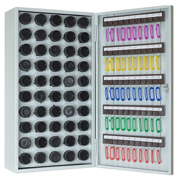Ключница Меткон КЛ-50П предназначена для хранения ключей в гостиницах, отелях, офисах, квартирах и загородных домах. Модель оснащена 5 планками под навеску ключей, 2 отверстиями для крепления на задней стенке корпуса и замком типа «Cam-Lock». Дополнительные характеристики: