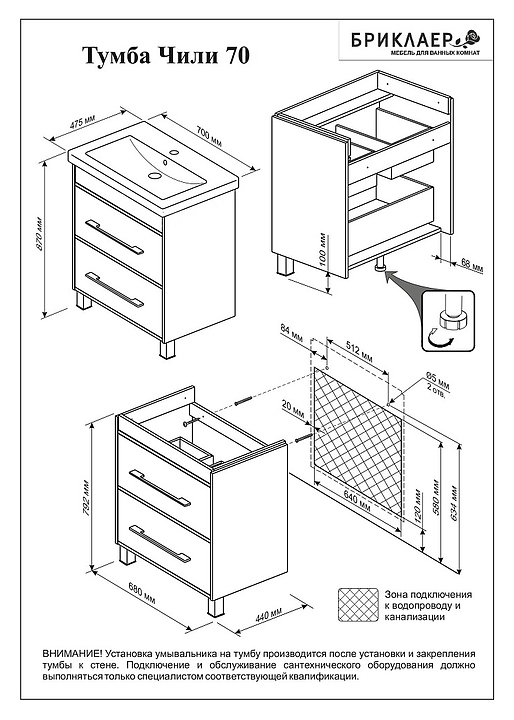 Тумба БРИКЛАЕР Чили 70 выполнена в современном минималистичном стиле. Благодаря компактным размерам и функциональности мебель станет украшением любой ванной комнаты. Модель оснащена 2 вместительными выдвижными ящиками для хранения ванных принадлежностей. Корпус и фасад мебели выполнены из ламинированной влагостойкой ЛДСП, фурнитура - из пластика. Может использоваться в комплекте с раковиной Como 70 или Фостер 70. В комплект поставки входят 2 ручки и 3 пластиковые опоры (декоративные спереди и поддерживающая сзади). Особенности: