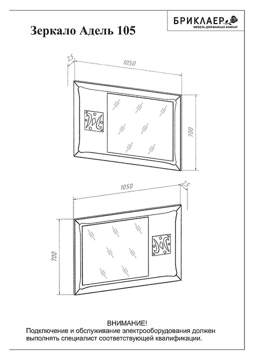 Зеркало БРИКЛАЕР Адель 105 выполнено в эко-стиле и отлично дополнит интерьер любой ванной комнаты. Благодаря подвесной конструкции модель не занимает много места, что позволяет экономить пространство в небольшой ванной комнате. Корпус выполнен из ламинированной влагостойкой ДСП, фасад - из МДФ. В комплект поставки входят навески для крепления к стене. Особенности: