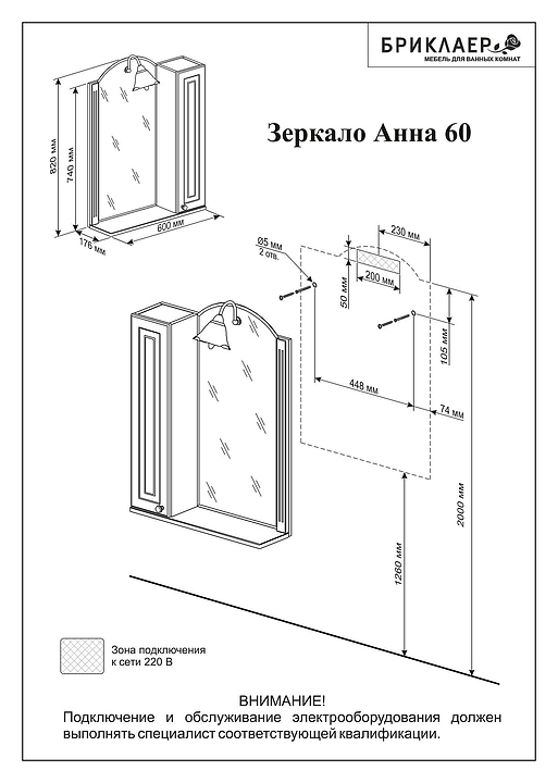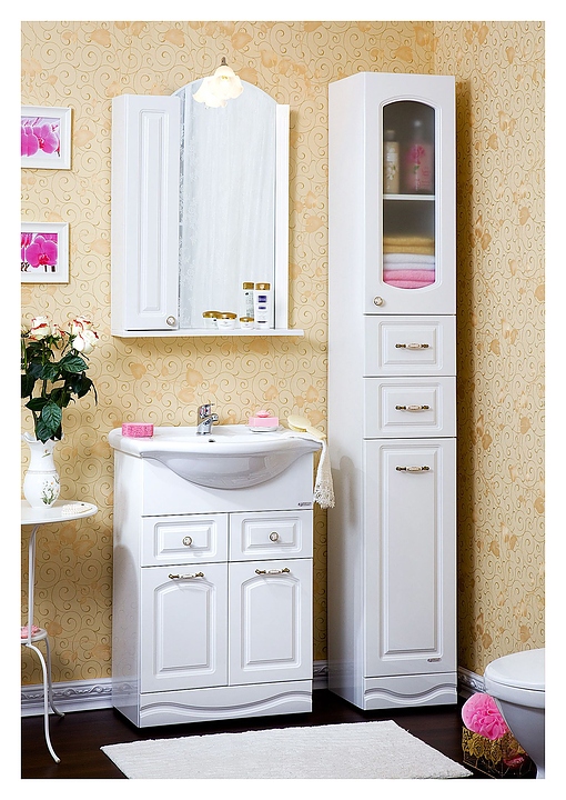 Зеркало БРИКЛАЕР Анна 60 выполнено в неоклассическом стиле и отлично дополнит интерьер любой ванной комнаты. Благодаря подвесной конструкции модель не занимает много места, что позволяет экономить пространство в небольшой ванной комнате. Модель оснащена светильником, шкафчиком с разделительными полками внутри, а также открытой полочкой. Корпус выполнен из ламинированной влагостойкой ДСП, фасад - из МДФ и ПВХ, ручки - из фарфора и металла с золотистым напылением, зеркальное полотно покрыто серебром с амальгамой, благодаря чему в период эксплуатации зеркало не деформируется, а отражение не искажается.