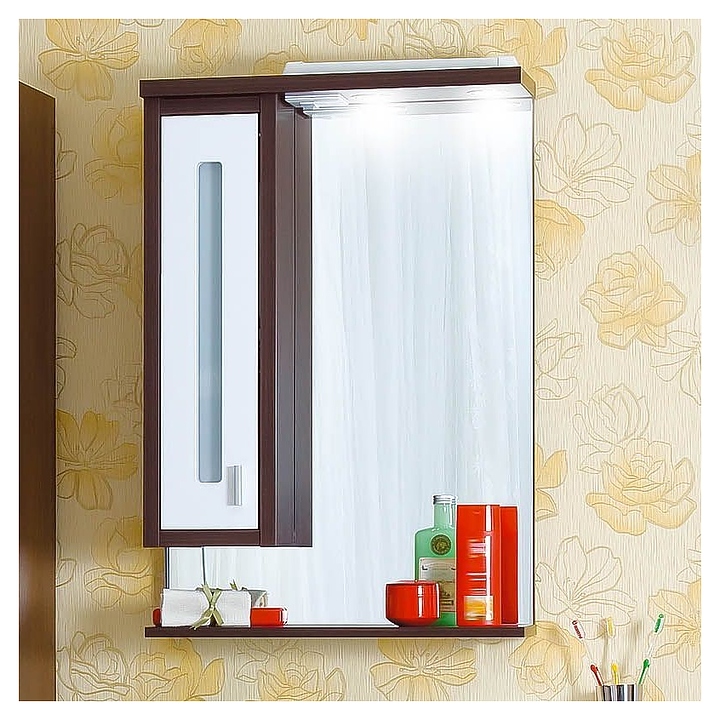 Зеркало БРИКЛАЕР Бали 62 62х84,3 см левое, с подсветкой, венге, белый глянец