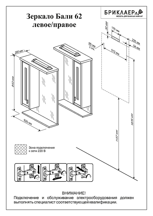 Зеркало БРИКЛАЕР Бали 62 выполнено в стиле модерн и отлично дополнит интерьер любой ванной комнаты. Благодаря подвесной конструкции модель не занимает много места, что позволяет экономить пространство в небольшой ванной комнате. Модель оснащена козырьком со светильником, закрытым шкафчиком с разделительными полками внутри, а также открытой полочкой снизу. Корпус выполнен из ламинированной влагостойкой ДСП, фасад - из МДФ с покрытием краской, ручки - из хромированного металла с тонким защитным слоем, устойчивым к механическим повреждениям. Зеркальное полотно покрыто серебром с амальгамой, благодаря чему в период эксплуатации зеркало не деформируется, а отражение не искажается. В комплект поставки входят навески для крепления к стене, 2 галогеновых светильника со сменными лампами 12 V, выключатель с розеткой и электрический провод 0.5 м для подключения к электросети 220 В, металлическая ручка и петли с доводчиками. Особенности: