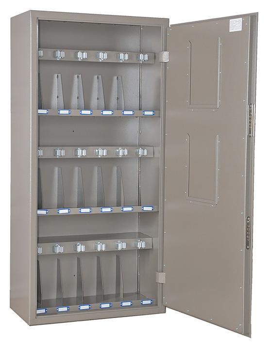 Сейф Меткон ОШ-18 «Кедр» предназначен для хранения оружия, патронов и принадлежностей. Модель оснащена полками, 2 ключевыми сувальдными замками 2-го класса. Ложементы выполнены из металла с резиновыми роликами. Дополнительные характеристики: