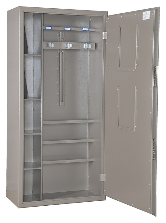 Сейф Меткон ОШ-3УН предназначен для хранения оружия, патронов и принадлежностей. Модель оснащена 8 полками, 2 ключевыми замками и 2 рамками под опись на внутренней стороне двери. Ложементы выполнены из металла с резиновыми роликами. Дополнительные характеристики: