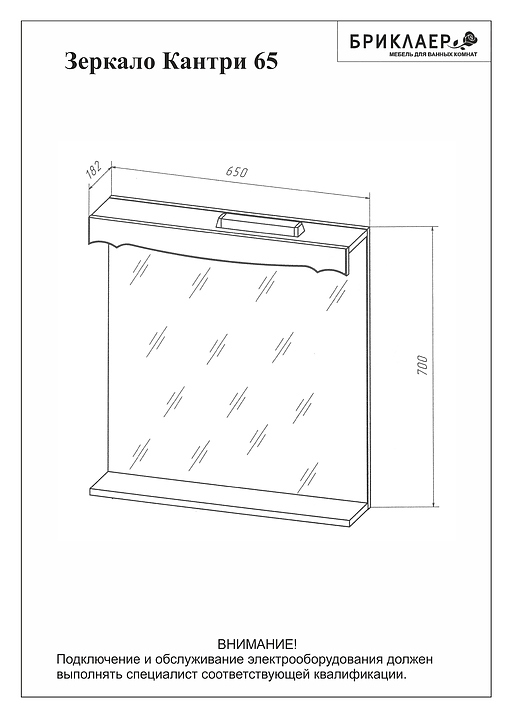 Зеркало БРИКЛАЕР Кантри 65 выполнено в стиле прованс и отлично дополнит интерьер любой ванной комнаты. Модель оснащена светильником и открытой полочкой для хранения принадлежностей. Благодаря подвесной конструкции модель не занимает много места, что позволяет экономить пространство в небольшой ванной комнате. Корпус выполнен из ламинированной влагостойкой ДСП, фасад - из МДФ. В комплект поставки входят навески для крепления к стене, светильник и электрический провод 0.5 м для подключения к электросети 220 В. Особенности: