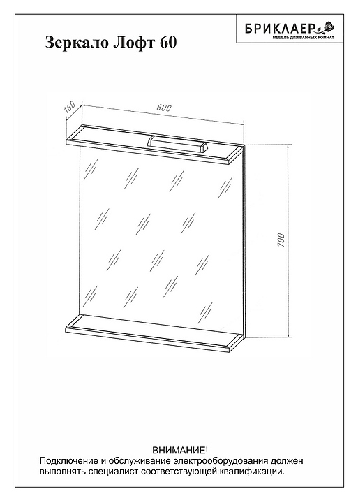 Зеркало БРИКЛАЕР Лофт 60 выполнено в эко-стиле и отлично дополнит интерьер любой ванной комнаты. Модель оснащена светильником и открытой полочкой для хранения ванных принадлежностей. Благодаря подвесной конструкции модель не занимает много места, что позволяет экономить пространство в небольшой ванной комнате. Корпус выполнен из ламинированной влагостойкой ДСП, отличающейся влагостойкостью, прочностью, устойчивостью к перепадам температурных режимов, способностью сохранять цвет и форму изделия в первозданном виде длительный срок, фасад - из МДФ, фурнитура - из металла. В комплект поставки навески для крепления к стене, петли с доводчиками, светильник и электрический провод 0,5 м для подключения к электросети 220 В. Особенности: