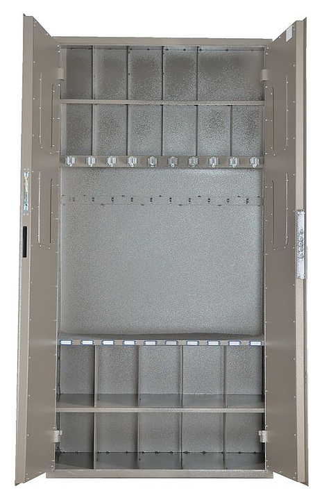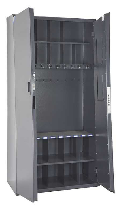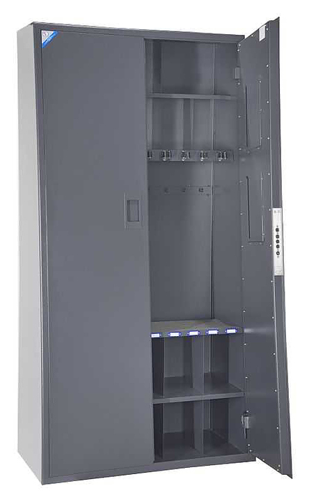 Сейф Меткон ОШ-103 предназначен для хранения служебного оружия, патронов и принадлежностей. Модель оснащена ключевым сувальдным тяговым замком 4 класса, ковриком, роликовыми ложементами и ячейками для хранения противогазов или принадлежностей для ухода за оружием. Сейф выполнен в форме пирамиды. Дополнительные характеристики: