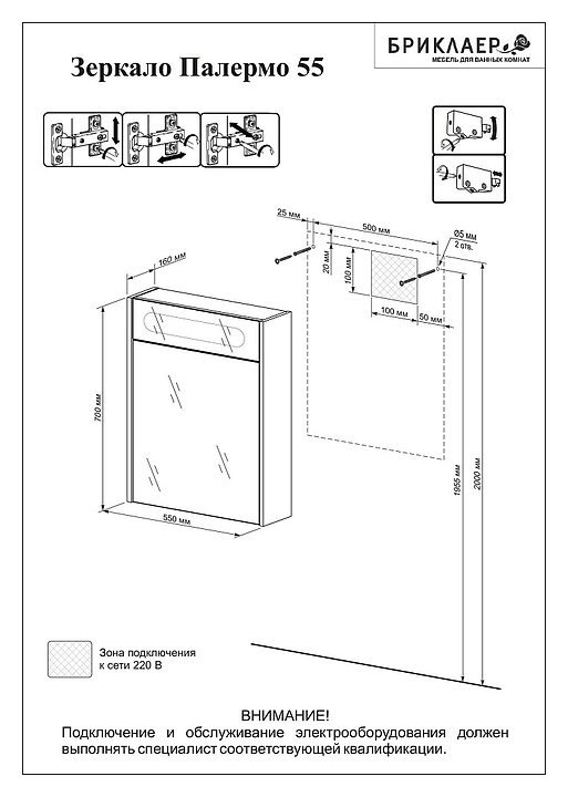 Зеркальный шкаф БРИКЛАЕР Палермо 55 выполнен в современном минималистичном стиле и отлично дополнит интерьер любой ванной комнаты. Модель оснащена закрытым шкафчиком с вместительным отделением с полкой для хранения ванных принадлежностей и люминисцентным светильником, свет которого проходит сквозь овальное прозрачное окошко. Благодаря подвесной конструкции модель не занимает много места, что позволяет экономить пространство в небольшой ванной комнате. Фасад и корпус мебели выполнен из ЛДСП с лаковым покрытием, отличающейся влагостойкостью, прочностью, устойчивостью к перепадам температурных режимов, способностью сохранять цвет и форму изделия в первозданном виде длительный срок. Зеркальное полотно покрыто серебром с амальгамой. В комплект поставки входят навески для крепления к стене и петли. Особенности: