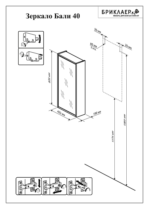 Зеркальный шкаф БРИКЛАЕР Бали 40 выполнен в стиле модерн и отлично дополнит интерьер любой ванной комнаты. Модель оснащена закрытым шкафчиком с разделительной полкой для хранения ванных принадлежностей. Благодаря подвесной конструкции модель не занимает много места, что позволяет экономить пространство в небольшой ванной комнате. Корпус мебели выполнен из влагостойкой ЛДСП, отличающейся влагостойкостью, прочностью, устойчивостью к перепадам температурных режимов, способностью сохранять цвет и форму изделия в первозданном виде длительный срок. Зеркальное полотно покрыто серебром с амальгамой. В комплект поставки входят подвесы для крепления к стене. Особенности: