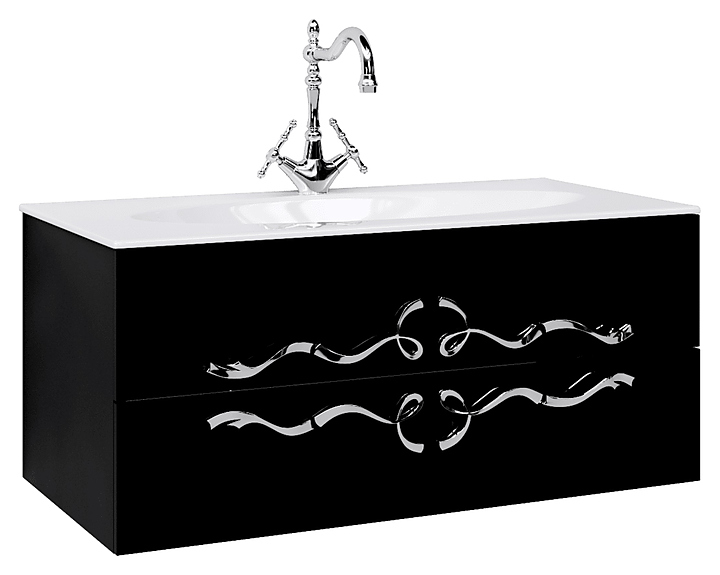 Тумба под раковину Clarberg Due amanti DUE0110BLK дополнит интерьер ванной комнаты. Благодаря подвесной конструкции модель не занимает много места, что экономит пространство в ванной комнате и облегчает уборку. Тумба оснащена 2 ящиками. Изделие выполнено из МДФ и покрыто глянцевой эмалью, которая характеризуется стойкостью к небольшим механическим повреждениям и простотой в уходе. Тумба используется вместе с раковиной Elegance 1000. Опции (заказываются отдельно):