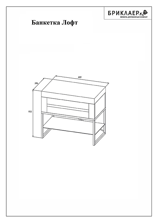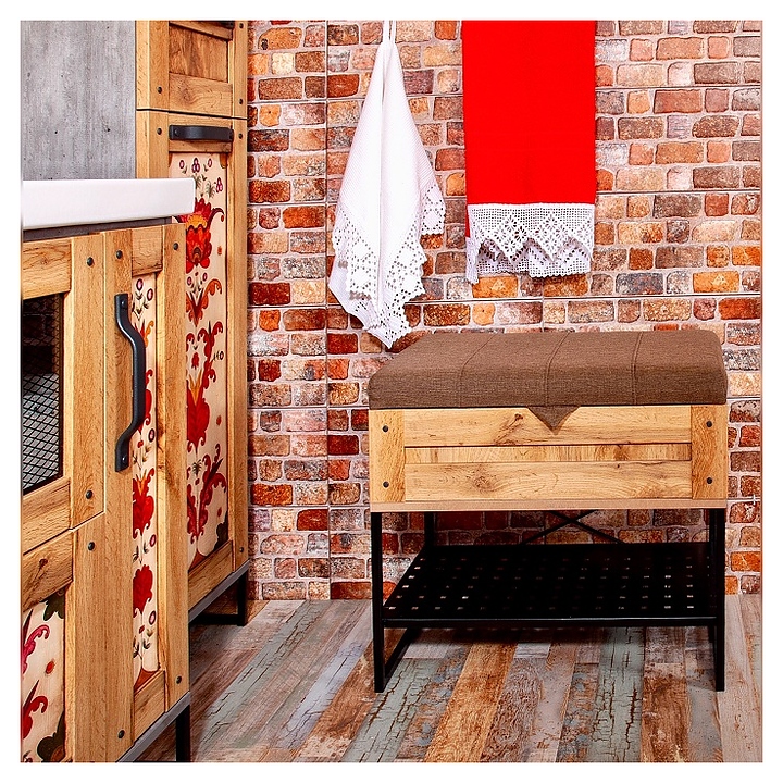 Банкетка БРИКЛАЕР Лофт выполнена в стиле эко и отлично дополнит интерьер любой ванной комнаты. Модель оснащена опорным металлическим каркасом со стационарной металлической полкой для обуви, откидной крышкой на кронштейнах и коробом для хранения ванных принадлженостей. Корпус выполнен из влагостойкой ЛДСП, отличающейся влагостойкостью, прочностью, устойчивостью к перепадам температурных режимов, способностью сохранять цвет и форму изделия в первозданном виде длительный срок, фурнитура - из металла, наполнитель сиденья - из поролона.