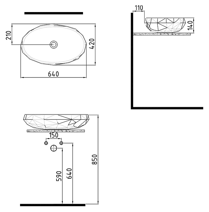 Раковина накладная Bien Moly MLLG06201FD0W3000 64х42 см