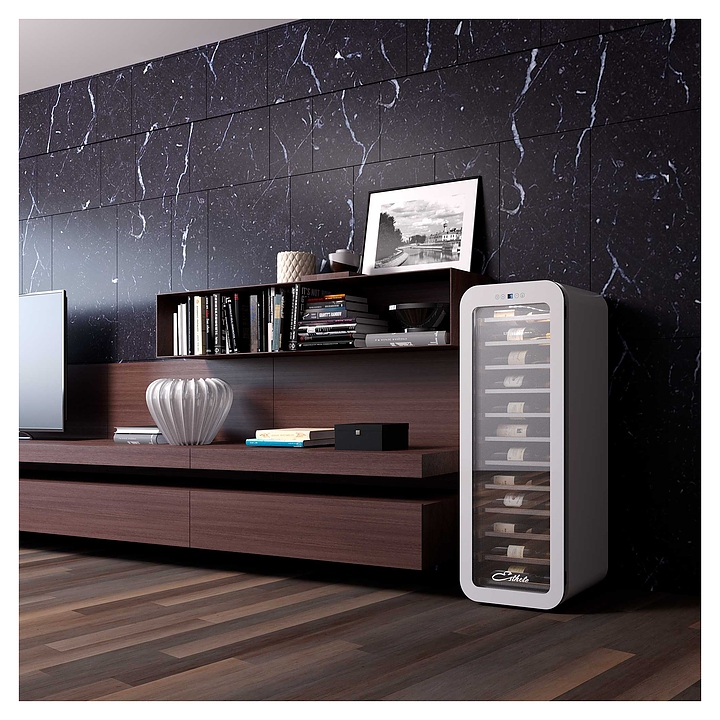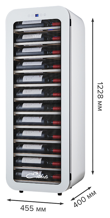 Винный шкаф Libhof Esthete ES-34 White предназначен для хранения при оптимальных условиях бутилированного вина различных сортов в барах, ресторанах, специализированных магазинах, подсобных складских помещениях, а также в домашних условиях. Модель оснащена холодильной камерой с 12 выдвижными полками на телескопических направляющих, распашной дверью с внутренними петлями, длинной рукояткой, обзорным стеклом с точечным рельефом и защитным напылением от ультрафиолетовых лучей. Корпус выполнен из металла, полки – из массива буковой древесины. Особенности: