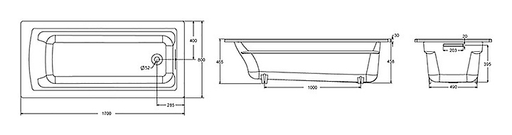 Ванна Jacob Delafon ARCHER E6D904-0 170х80 см без ручек, чугун