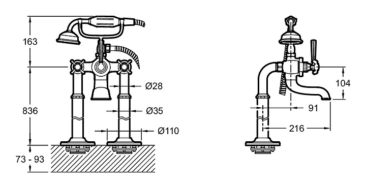 Смеситель для ванны и душа напольный Jacob Delafon CLEO 1889 E24314-BGG бежевое золото