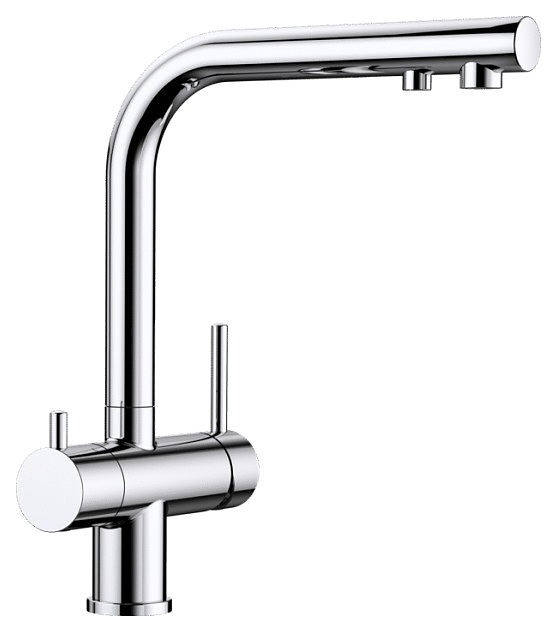 Смеситель Blanco Fontas II 525137 предназначен для использования на кухне для подачи горячей и холодной воды. Модель оснащена удобными ручками для фильтрованной и водопроводной воды, высоким поворотным изливом и керамическим картриджем. Изделие выполнено из высококачественной латуни, которая отличается прочностью, долговечностью и устойчивостью к перепадам температур. Особенности: