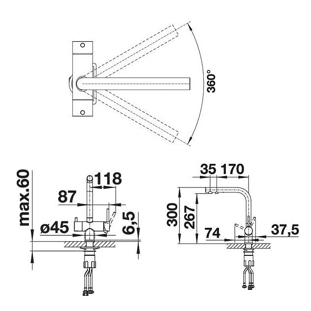 Смеситель Blanco Fontas II 525140 предназначен для использования на кухне для подачи горячей и холодной воды. Модель оснащена удобными ручками для фильтрованной и водопроводной воды, высоким поворотным изливом и керамическим картриджем. Изделие выполнено из высококачественной латуни, которая отличается прочностью, долговечностью и устойчивостью к перепадам температур. Особенности:
