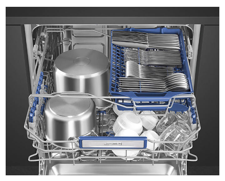 Встраиваемая посудомоечная машина Smeg STL323BL используется в загородном доме или квартире для мойки бокалов, чашек, тарелок, сковородок, кастрюль и столовых приборов. Лаконичный стильный дизайн станет украшением интерьера. Внутренняя камера и фильтр выполнены из нержавеющей стали, корзины - из пластика. Программы / функции / опции: