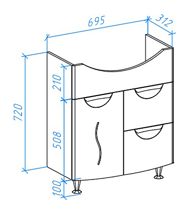 Тумба под раковину Bellezza Глория 75 дополнит интерьер ванной комнаты. Модель оснащена распашной дверцей, 2 ящиками и ножками, защищающими конструкцию в случае намокания пола. Корпус выполнен из влагостойкой ЛДСП, фасад - из МДФ. Изделие покрыто глянцевой эмалью для защиты поверхности от внешних воздействий. Тумба используется вместе с раковиной Kirovit Монро 75. Дополнительные характеристики: