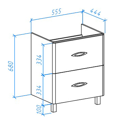Тумба под раковину Bellezza Джела 60 с 2 ящиками, напольная