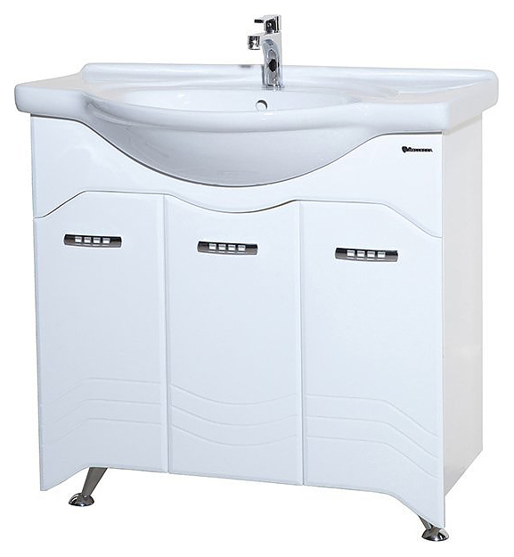Тумба под раковину Bellezza Дрея 85 дополнит интерьер ванной комнаты. Тумба оснащена 2 распашными дверцами, бельевой корзиной и ножками, защищающими конструкцию в случае намокания пола. Корпус выполнен из влагостойкой ЛДСП, фасад - из МДФ. Изделие покрыто глянцевой эмалью для защиты поверхности от внешних воздействий. Тумба используется вместе с раковиной KIROVIT Элеганс 85. В комплект поставки входят доводчики. Дополнительные характеристики: