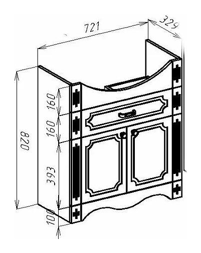Тумба под раковину Bellezza Кантри 75 дополнит интерьер ванной комнаты. Тумба оснащена 2 распашными дверцами и выдвижным ящиком. Корпус выполнен из влагостойкой ЛДСП, фасад - из МДФ. Изделие покрыто глянцевой эмалью для защиты поверхности от внешних воздействий. Тумба используется вместе с раковиной KIROVIT Стиль 750. Дополнительные характеристики: