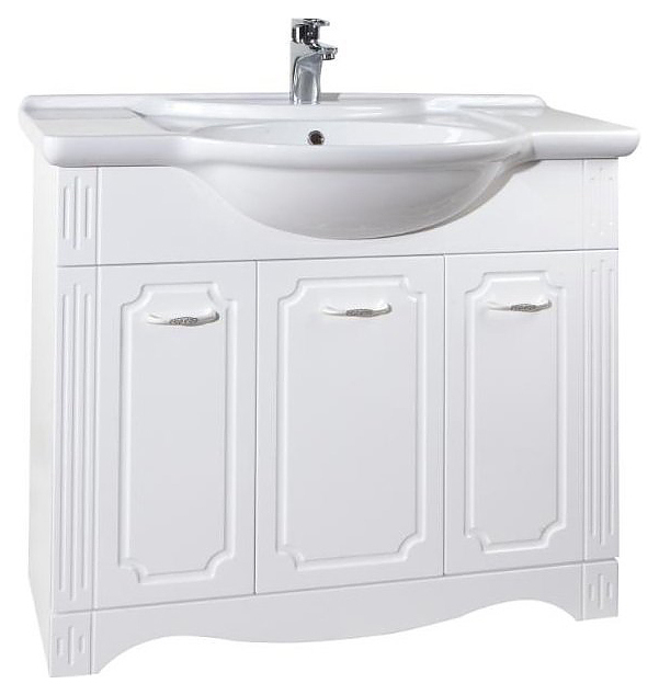 Тумба под раковину Bellezza Кантри 95 дополнит интерьер ванной комнаты. Тумба оснащена 3 распашными дверцами. Корпус выполнен из влагостойкой ЛДСП, фасад - из МДФ. Изделие покрыто глянцевой эмалью для защиты поверхности от внешних воздействий. Тумба используется вместе с раковиной Dreja Дрея 95. Дополнительные характеристики:
