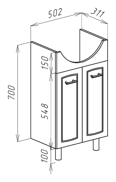 Тумба под раковину Bellezza Классик 55 дополнит интерьер ванной комнаты. Тумба оснащена 2 распашными дверцами и ножками, защищающими конструкцию в случае намокания пола. Корпус выполнен из влагостойкой ЛДСП, фасад - из МДФ. Изделие покрыто глянцевой эмалью для защиты поверхности от внешних воздействий. Тумба используется вместе с раковиной Элеганс 55. Дополнительные характеристики: