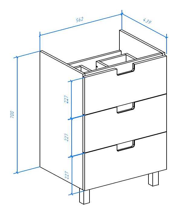 Тумба под раковину Bellezza Пегас 60 с 3 ящиками, черная