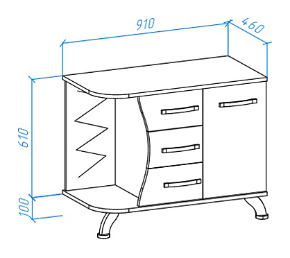Тумба под раковину Bellezza Рио 90 R дополнит интерьер ванной комнаты. Тумба оснащена дверцей, 3 ящиками, открытой стеклянной полкой в боковой части и ножками, защищающими конструкцию в случае намокания пола. Корпус выполнен из ЛДСП, фасад - из МДФ и зеркала. Изделие покрыто глянцевой эмалью для защиты поверхности от внешних воздействий. Тумба используется вместе с раковиной Kirovit Гамма 56. Дополнительные характеристики: